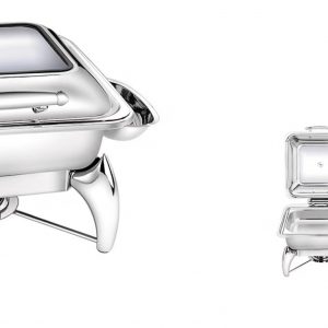 Nồi hâm buffet chữ nhật 6L có mặt kính dùng cồn là một trong những sản phẩm chuyên dùng của buffet nhà hàng, buffet sáng khách sạn & resort tiệc liên hoan hội nghị… dùng để làm nóng cùng lúc nhiều loại thức ăn nhanh chóng tiện lợi. Thức ăn được giữ nóng bằng hơi nước bên dưới nên khay, không tiếp xúc trực tiếp với lửa nên giữ nguyên được hương vị.